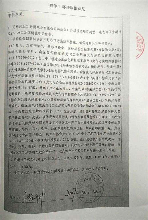 河北及時雨泵業有限公司鑄造分廠升級改造項目竣工環境保護驗收意見公示