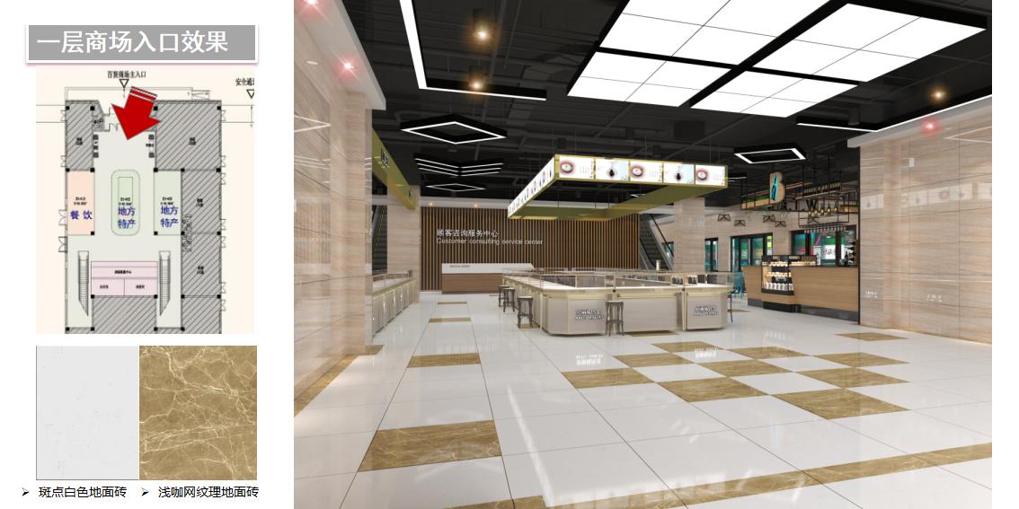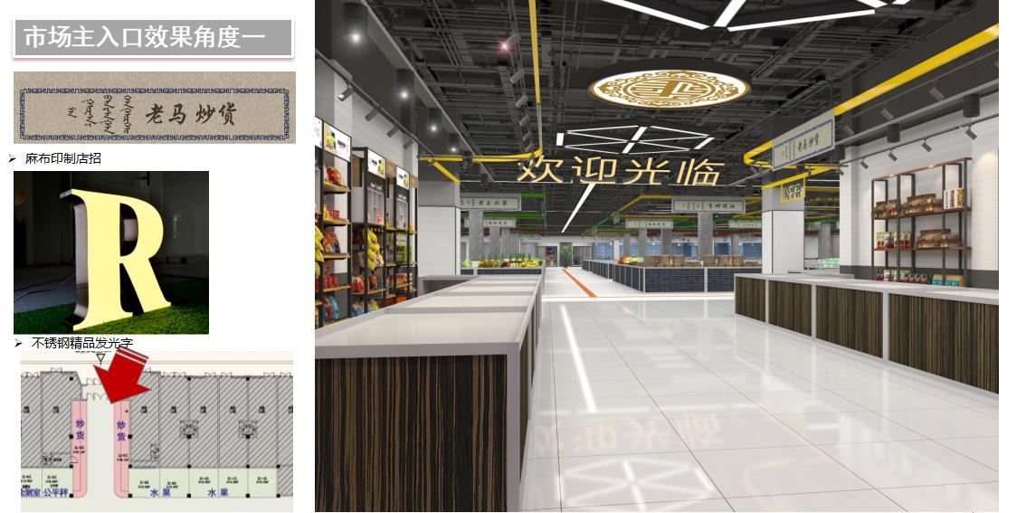 城市廣場綜合市場,擯棄以往菜市場刻板形象,以包豪斯現代風格創意空間理念,結合工業風格設計元素和少數民族特色原素,精心營造出輕松愜意的購物氛圍,空間以簡約、開放和包容的設計理念,結合幾何、立體、直線和曲線等元素,以突出每個獨立商鋪各自的個性和格調。通過材質與燈光的設計營造出時尚、簡約、溫馨、愉悅感官的綜合市場,利用原有的空間結構,采用多樣的商鋪組合與貨架和商品陳列形式,使空間變得生動靈活,增加消費者的購物樂趣。運用黑白灰無色系的對比和咖啡色主題色以及輔助色黃色的組合,帶來豐富視覺效果的同時又大大降低了裝飾成本。材料為鍍鋅方管氟碳噴涂、長條燈、水泥漆、小方磚、木紋板、鋼化玻璃、磨砂金屬在材料的選擇上體現了簡約、個性、創意。倡導的生活理念,以自由、開放、獨特、發展的視角,呈現這一扇門之美。